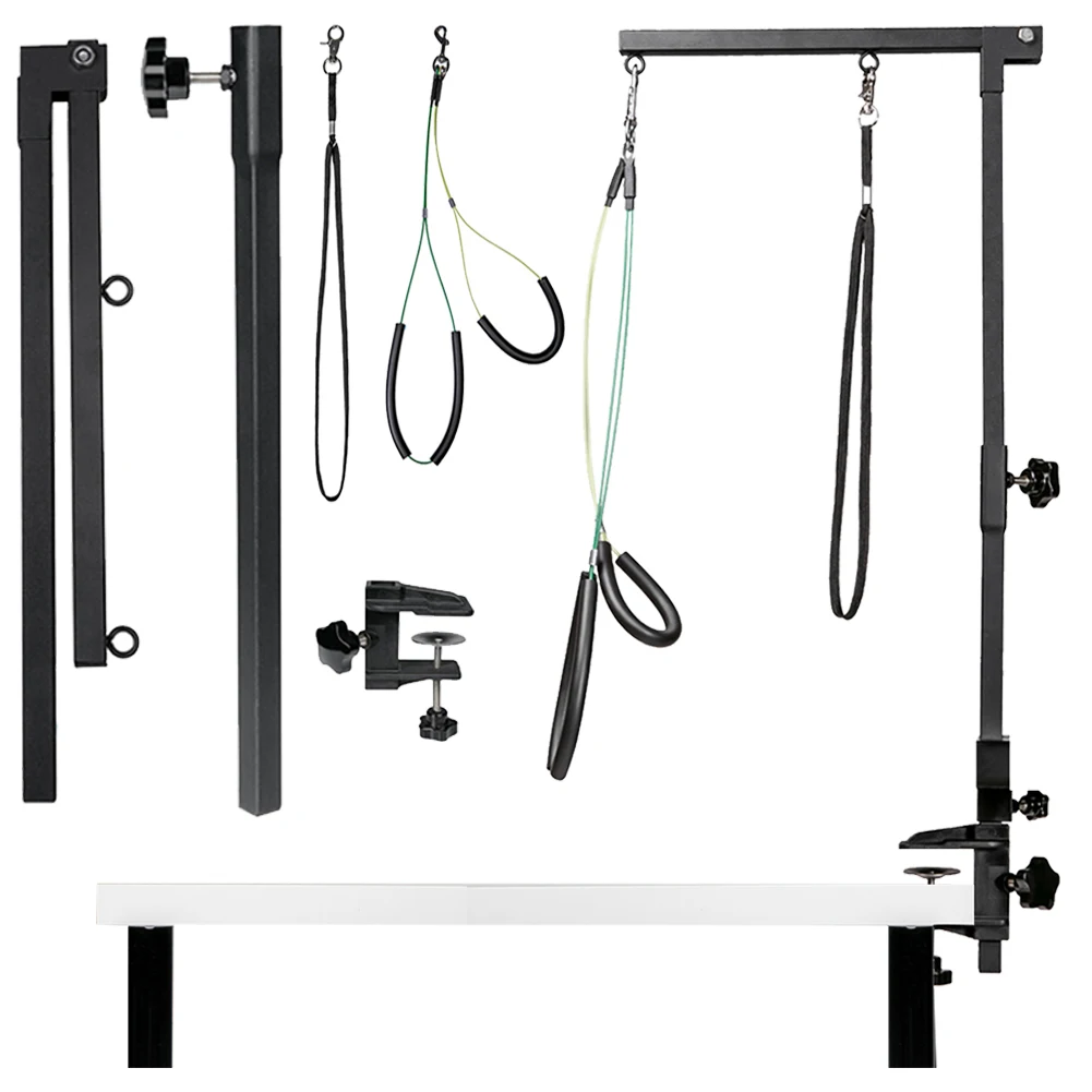 Desk Dog Cat Holder Stainless Steel Pet Dog Grooming Table Bracket Arm Height Adjustable Telescopic Table Hanger Pet Accessories